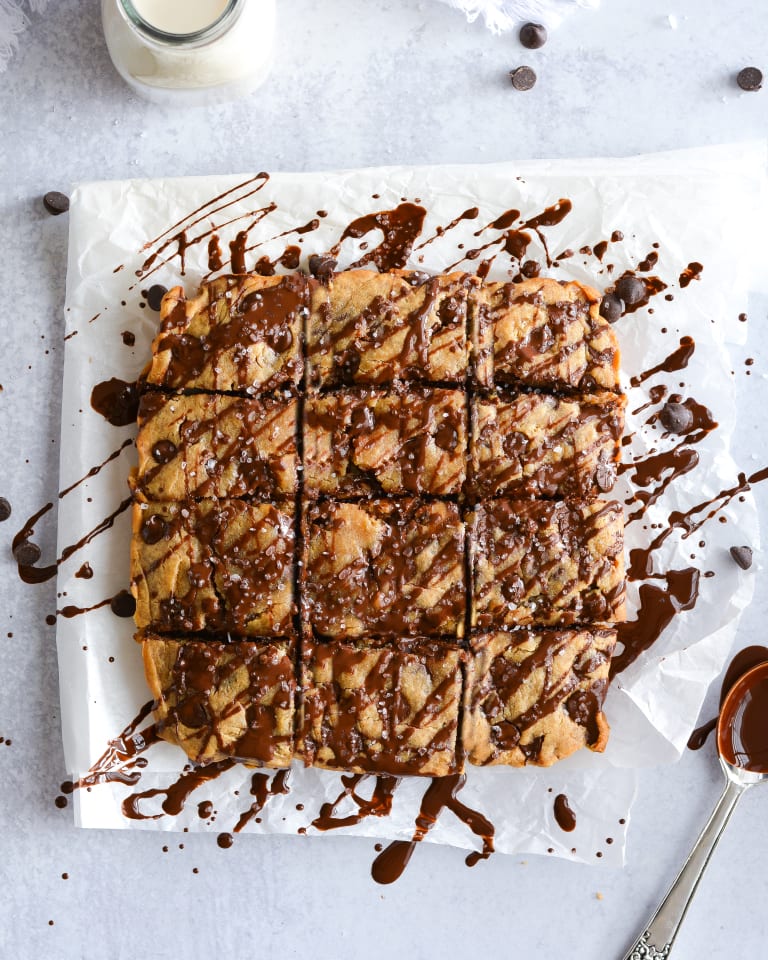 These chocolate-packed blondies made for Take Two by Lauren | Pinch of Parsley are the real deal and everything a dessert bar should be with the perfect crispy edges and a decadent gooey chewy center.