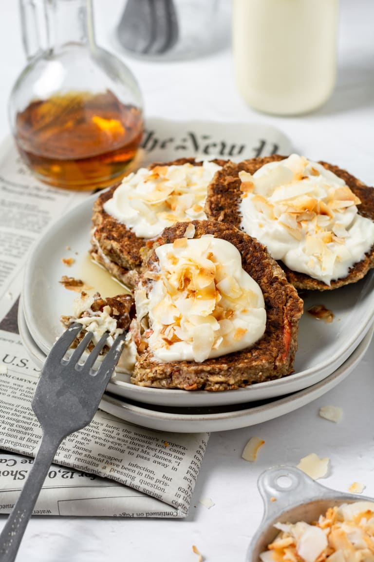 If you love carrot cake, then these fluffy vegan carrot cake pancakes are perfect for you! They're made easily in one bowl with simple, healthy ingredients that you may already have in your kitchen. It's seriously like having healthy cake for breakfast...what's better than that?